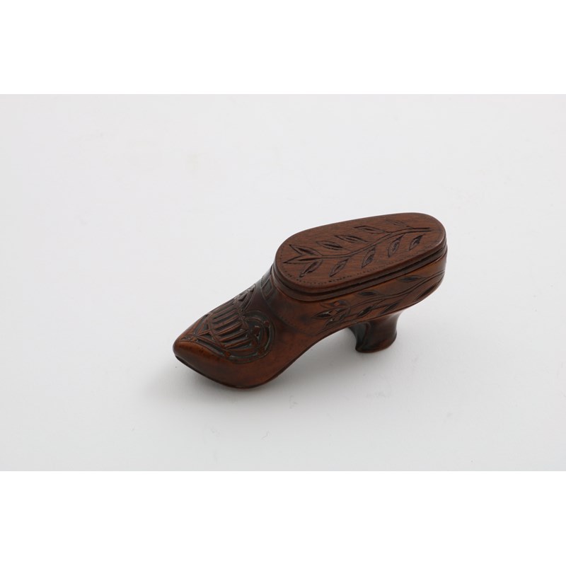 A LATE 18TH / EARLY 19TH CENTURY FRUITWOOD SHOE "LOVE TOKEN" SNUFF BOX
