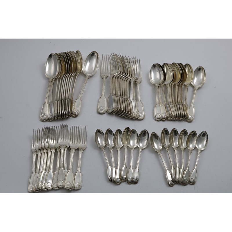 A VICTORIAN WEST COUNTRY CANTEEN OF FIDDLE, THREAD & SHELL PATTERN FLATWARE (DIAMOND SHELL HEEL) TO INCLUDE:-