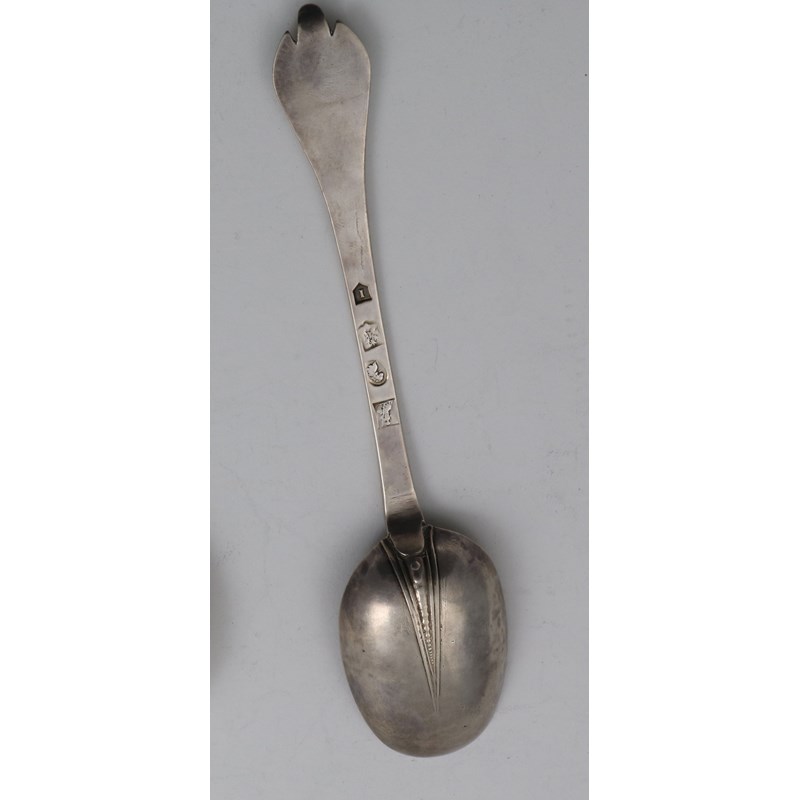 A QUEEN ANNE ASCRIBED WEST COUNTRY TREFID SPOON with a bead and reed rattail, no maker's mark, Exeter 1709; 8.75" (22.2 cms); 1.9 oz