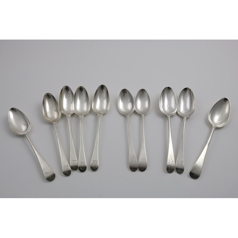 TEN GEORGE III TABLE SPOONS TO INCLUDE:-