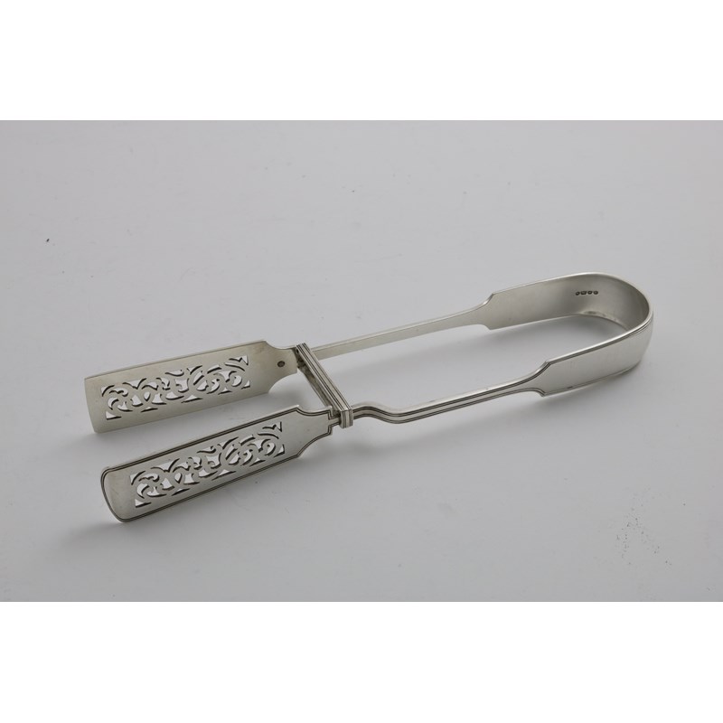 A PAIR OF VICTORIAN SERVING TONGS Fiddle & Thread pattern, with scroll-pierced blades, crested, by Messrs J & A. Savory, London 1846; 10.4" (26.4 cms) long; 6.7 oz