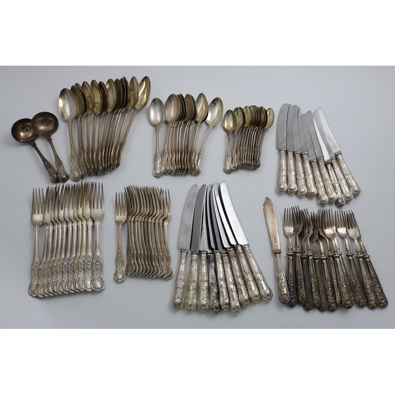 Queen's pattern (with stainless steel blades); 166.5 oz weighable silver (lot)