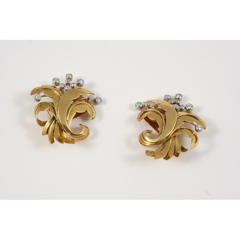 A PAIR OF DIAMOND AND GOLD EAR CLIPS BY VAN CLEEF & ARPELS