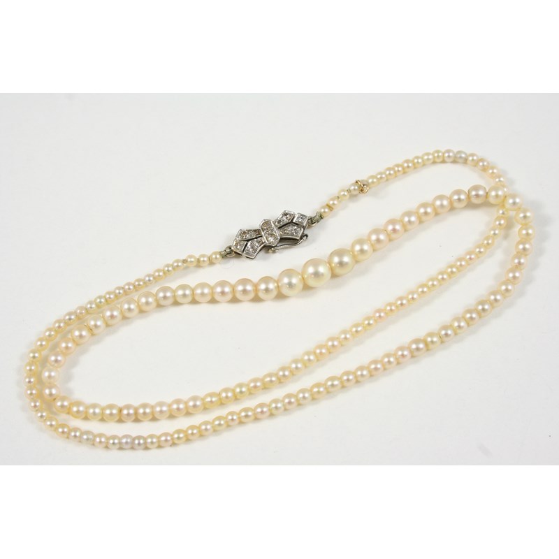 the pearls graduate to a diamond set clasp, 40.5cm. long.