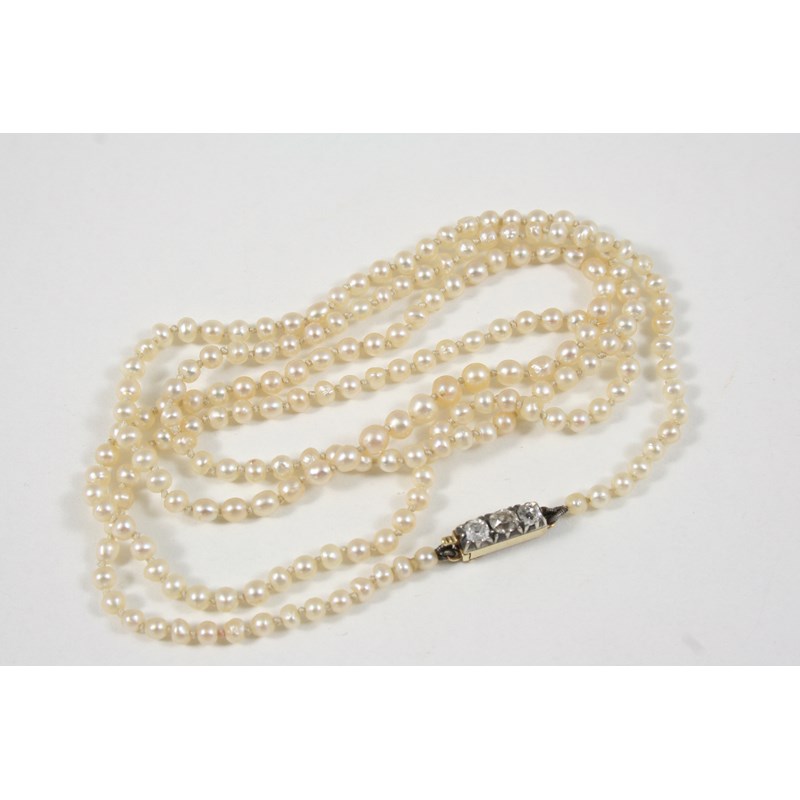the pearls graduate to a diamond set clasp, 66.5cm. long.