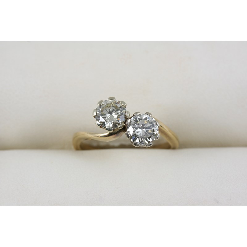 A DIAMOND CROSS-OVER RING the two brilliant-cut diamonds weigh approximately and and are set in gold. Size Q.