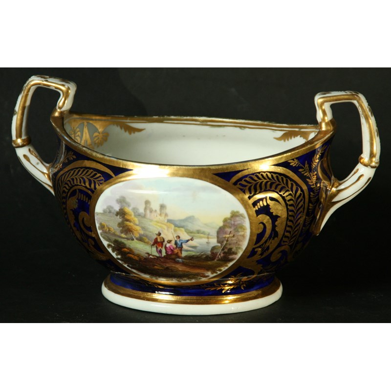 early 19th Century, painted with views of 'Near Florence' and 'Near Verona, Italy' on a blue and gilt ground between two handles. Iron red factory and view titles to base. 21cm. Provenance ex-Bryant Collection.