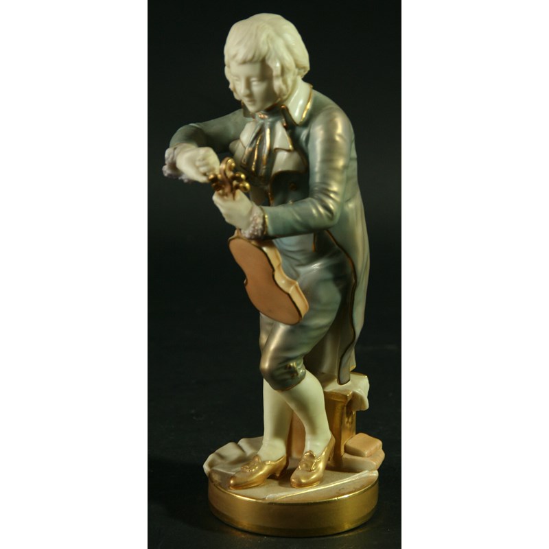 A ROYAL WORCESTER FIGURE OF THE YOUNG MOZART, model 1847, date cipher for 1931, in a pale blue jacket, puce printed marks, 22cm
