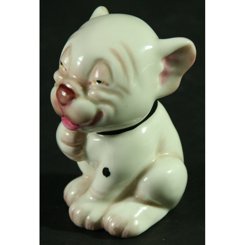 A ROYAL WORCESTER FIGURE OF BONZO, model 2855, date cipher for 1930, with a black collar, puce printed marks, 7cm