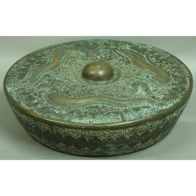 A CHINESE BRONZE GONG embossed and cast with dragons, 46cm