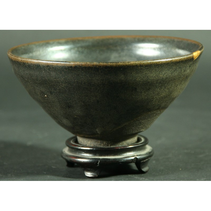 A CHINENE SUNG STONEWARE BOWL, with Hare's Fur glaze above a dark grey body, 13cm diameter