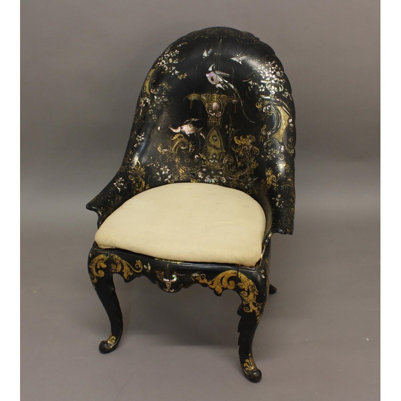 A 19TH CENTURY PAPIER-MACHE 'GONDOLA' CHAIR,