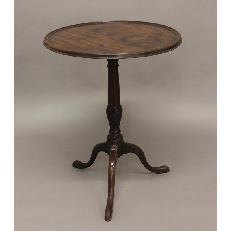 A GEORGE III MAHOGANY TILT-TOP TRIPOD TABLE, with circular dish top, height 76cm, width 61cm
