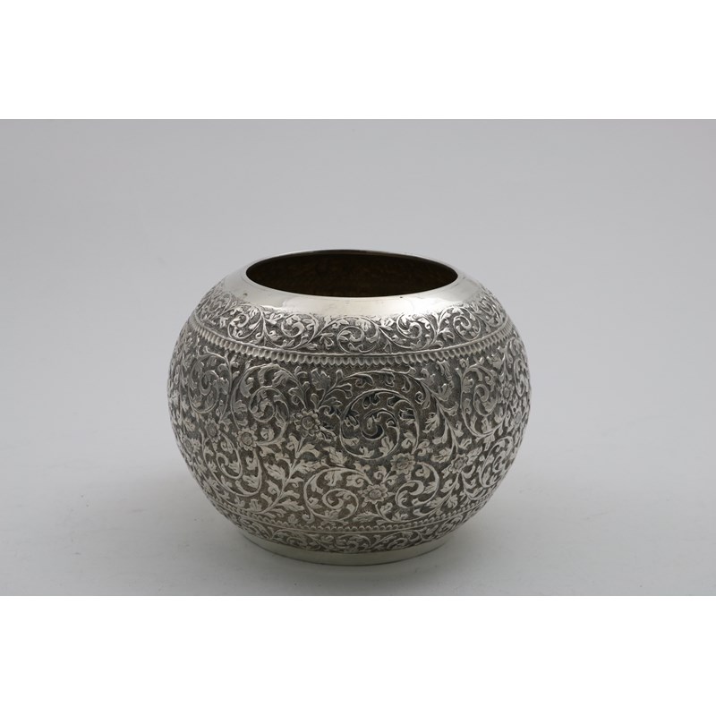 AN INDIAN EMBOSSED BOWL of near spherical form, probably late 20th century; 5.6" (14.2 cms) high; 15.1 oz