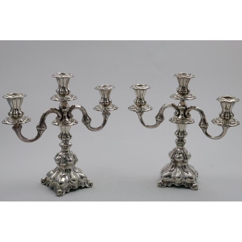 A PAIR OF SCANDINAVIAN THREE-LIGHT CANDELABRA
