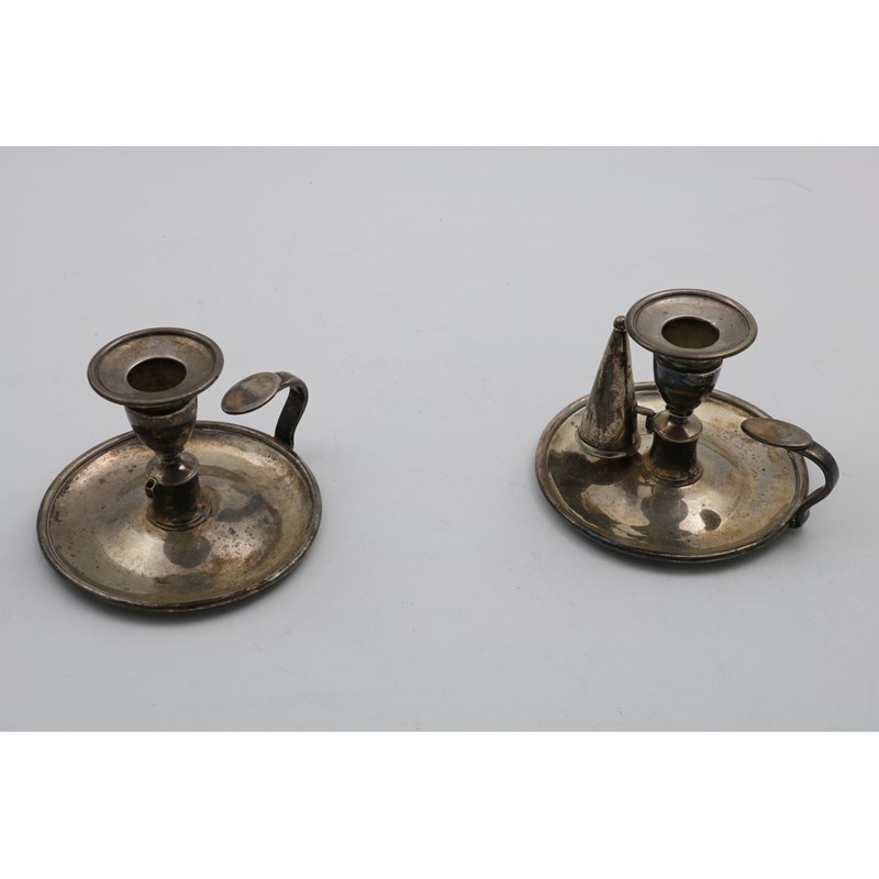 A PAIR OF GEORGE III PLAIN CIRCULAR CHAMBERSTICKS