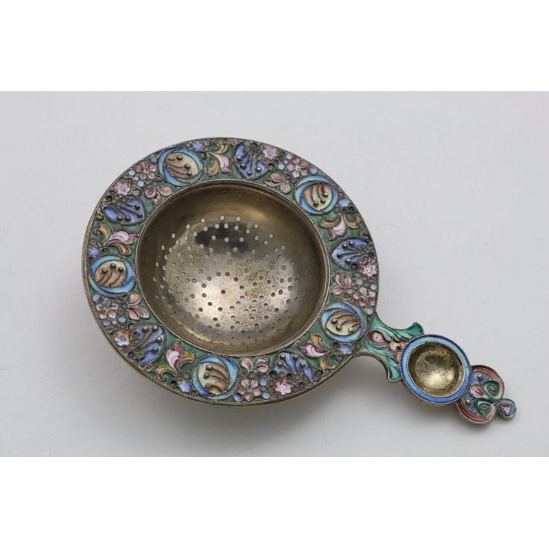 AN EARLY 20TH CENTURY RUSSIAN SILVERGILT ART NOUVEAU TEA STRAINER