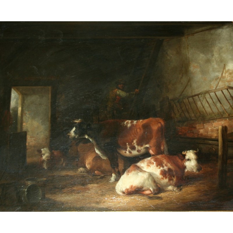 ATTRIBUTED TO CHARLES SHAYER (1826-1914) CATTLE RESTING IN A BYRE Oil on canvas 45 x 54.5cm.