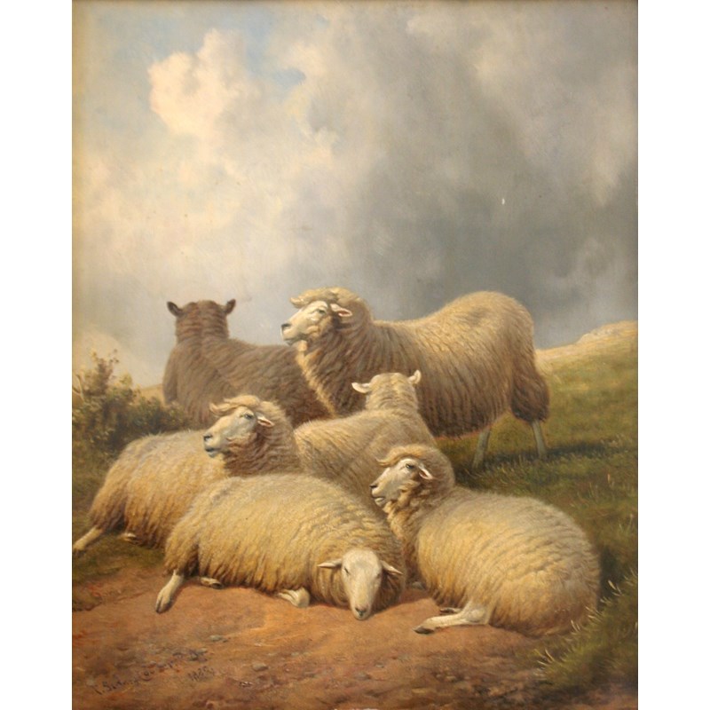 THOMAS SIDNEY COOPER, RA (1803-1902) SHEEP RESTING Signed and dated 1880, oil on board 24.5 x 19.5cm.