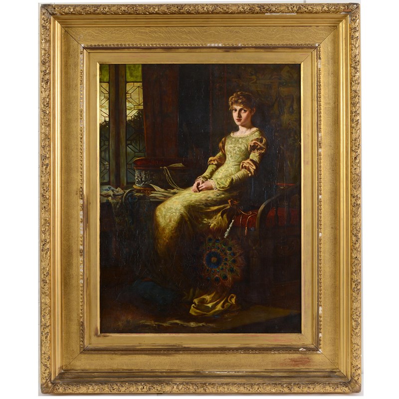 CIRCLE OF VALENTINE CAMERON PRINSEP, RA (1838-1904) SWEET SOLITUDE Bears another monogram lower left, oil on canvas 90.5 x 67.5cm.