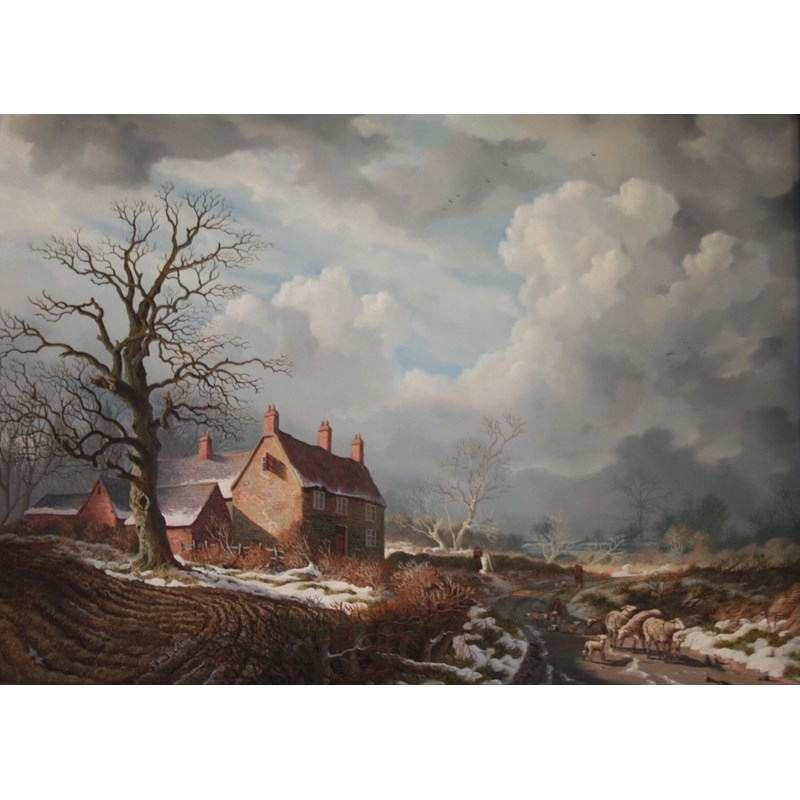 ‡DANIEL VAN DER PUTTEN (b.1949) A WINTER LANE Signed, oil on panel 31.5 x 43.5cm. Provenance: Stretton on Fosse, Astley House Fine Art, October 1985, acquired by the owner