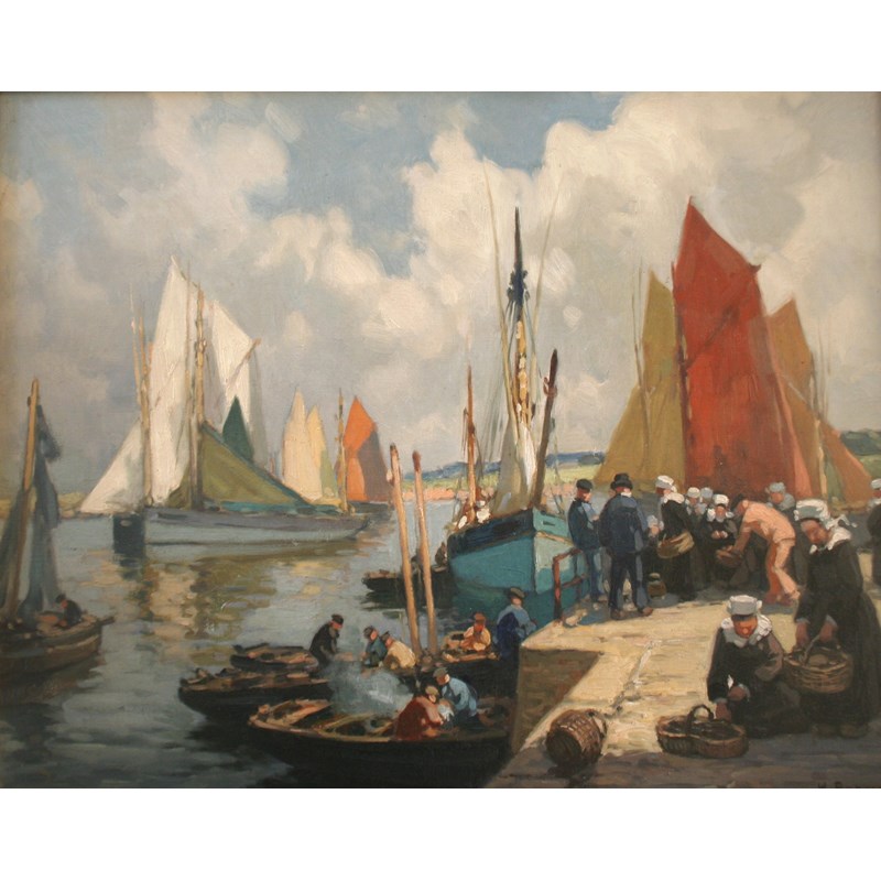 HENRI ALPHONSE BARNOIN (1882-1940) CONCARNEAU A pair, both signed, each inscribed on the stretcher, oil on canvas Each 31.5 x 39.5cm. (2)