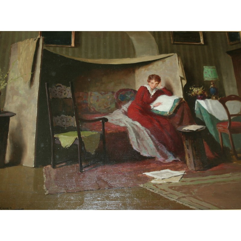 ENDRE KOMAROMI-KACZ (1880-1969) LADY IN AN INTERIOR Signed, oil on canvas 59 x 79cm.