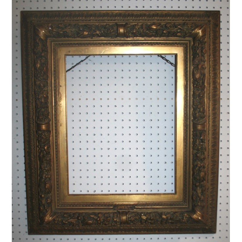 A PAIR OF GILT PICTURE FRAMES probably Netherlandish, circa 1900, with gesso flowerhead decoration To fit canvases 50 x 40cm. (2)