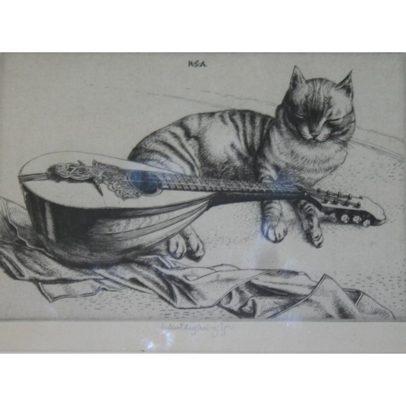 ‡ROBERT SARGENT AUSTIN, RA (1895-1973) MAN WITH A CRUCIFIX; CAT AND MANDOLIN; BEFORE MASS Three, etchings, 1924-1926, each signed in pencil, the latter two also dated 13 x 11cm.; 10 x 15.5cm.; and 12 x 11cm. (3)