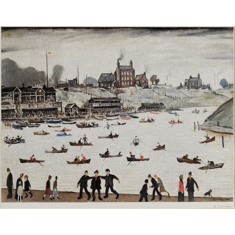 ‡AFTER LAURENCE STEPHEN LOWRY, RA (1887-1976) CRIME LAKE (1942) Colour reproduction, published by Adam Collection Ltd, 1971, with the Fine Art Trade Guild blindstamp, signed in pencil 45.5 x 60.5cm.