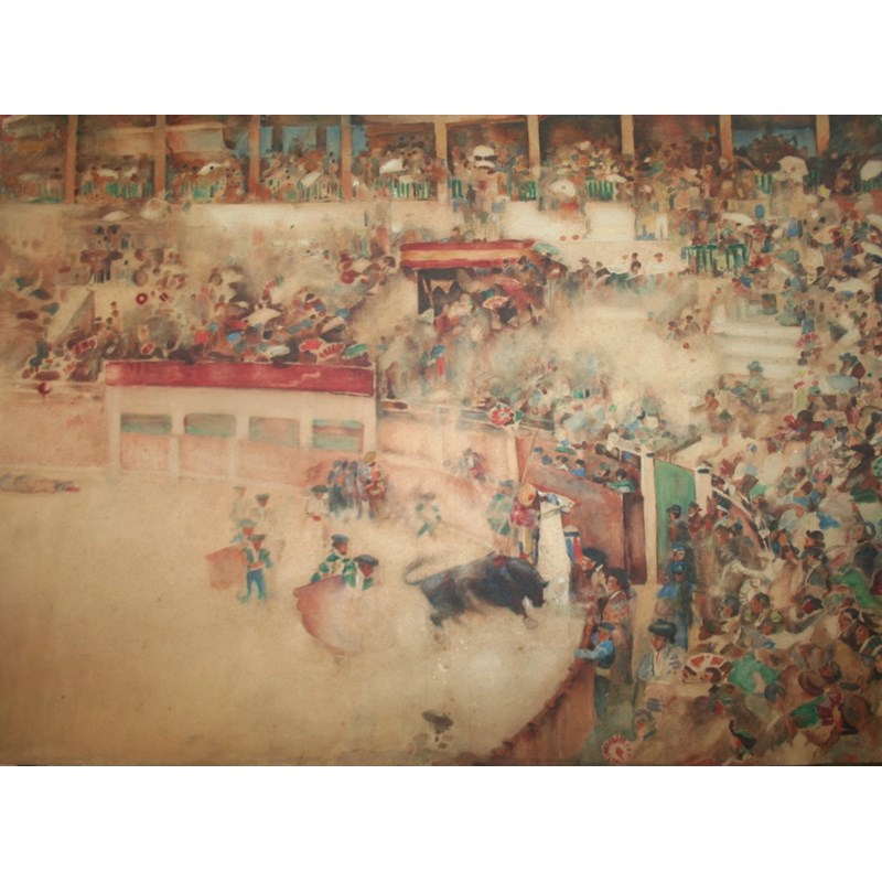 AFTER ARTHUR MELVILLE (1855-1904) THE LITTLE BULL FIGHT: BRAVO TORO Watercolour 55.5 x 76cm. * A copy of the c.1889 original donated to the V&A by the artist's widow in 1906.