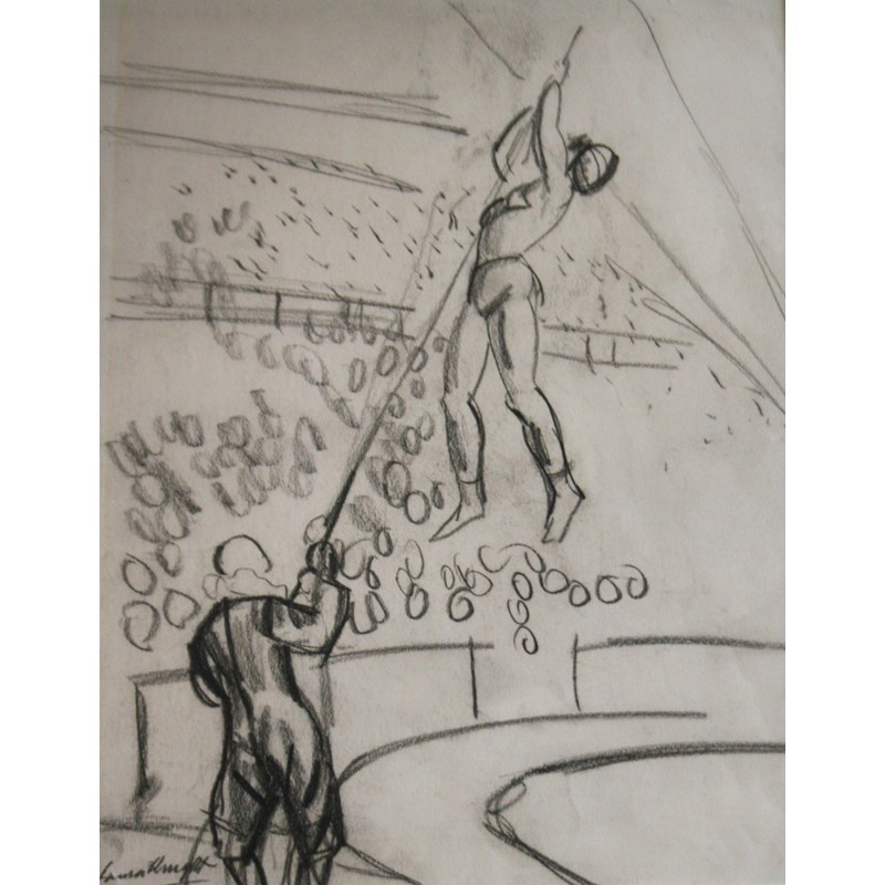 ‡DAME LAURA KNIGHT, DBE, RA, RWS (1877-1970) CIRCUS ACT Signed, charcoal sketch 34.5 x 26.5cm.