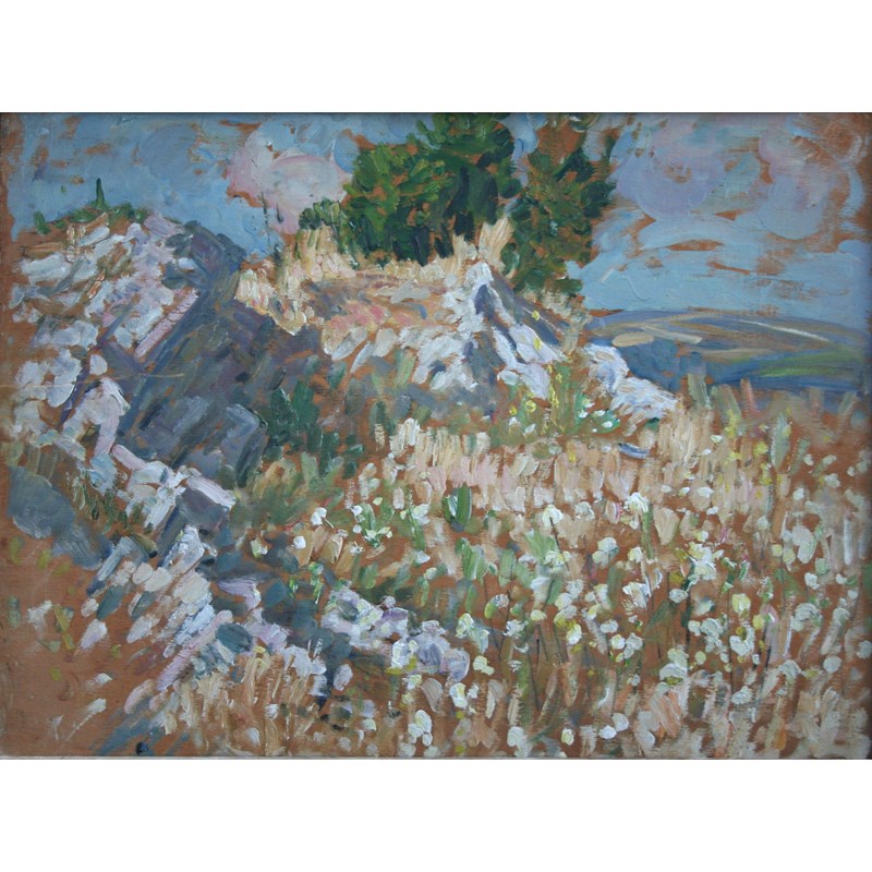 ‡DOROTHEA SHARP (1874-1955) LANDSCAPE SKETCH (recto); MOTHER AND CHILD STUDY (verso) Oil on thin panel 30 x 40cm.