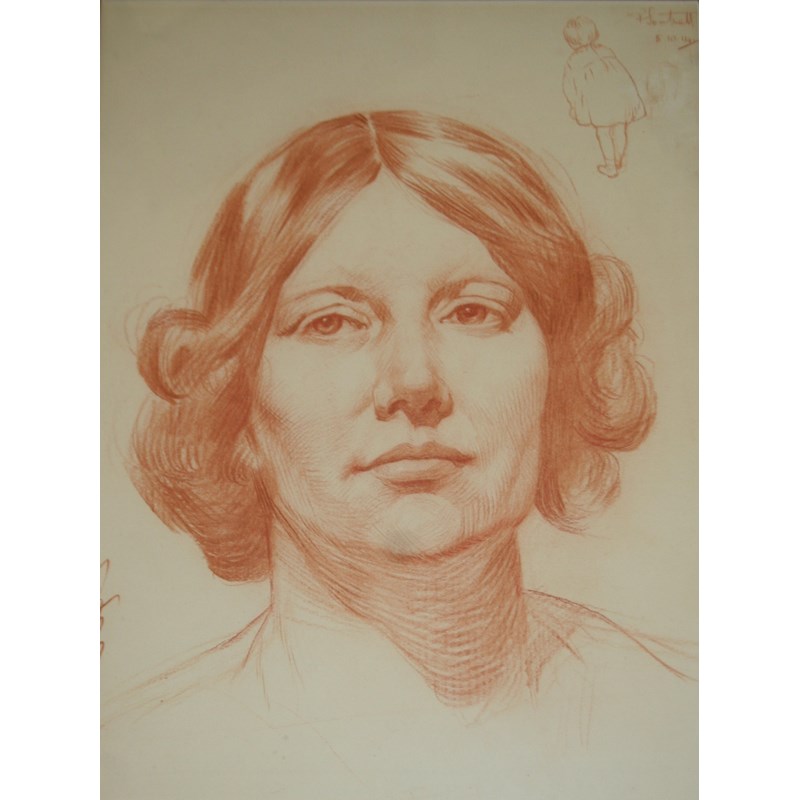 F** SOUTHALL (Fl.c.1914) HEAD STUDY OF A WOMAN Signed and dated 5.10.14, small vignette detail of child upper right, red crayon 41 x 31cm.