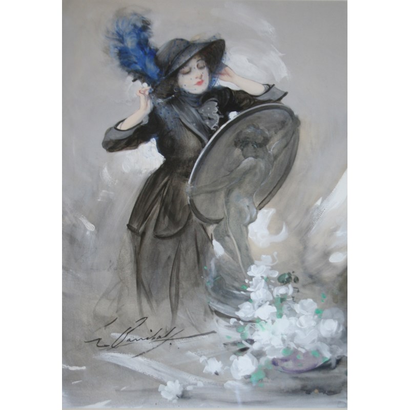 ‡WILLIAM H. BARRIBAL (1874-1952) THE MIRROR Signed, watercolour and gouache 44 x 31cm.