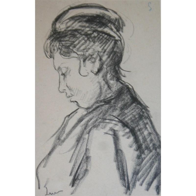 MAXIMILIEN LUCE (1858-1941) UNE FEMME, LA TETE BAISSEE Signed, charcoal 17 x 10.5cm.