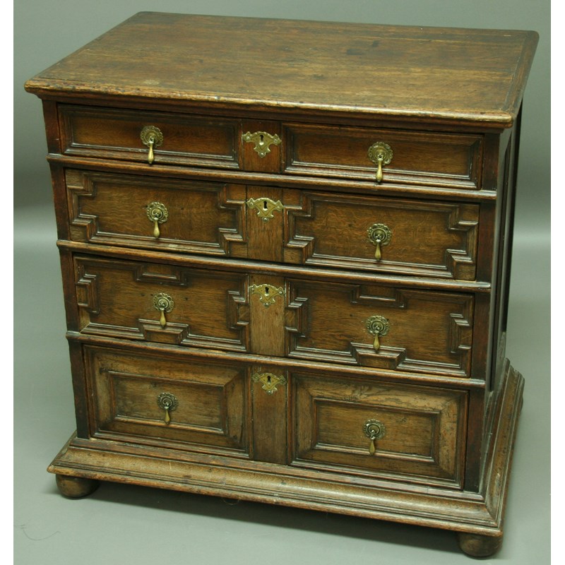 Oak Chest of Drawers A CAROLEAN OAK CHEST four graduated drawers with geometric decoration, on bun feet 90cm x 90cm