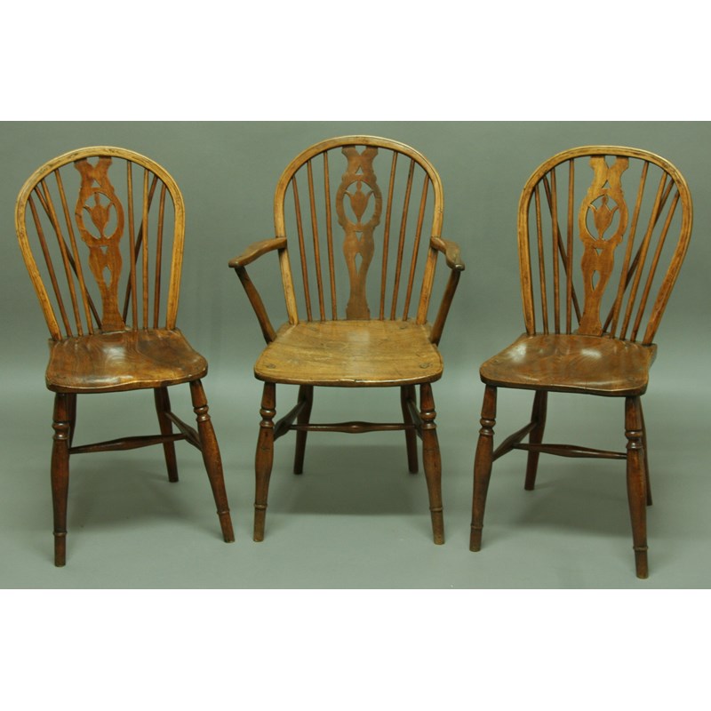 19th century, with harebell pierced splats, solid seats and H stretchers, comprising one carver and five side chairs (6)