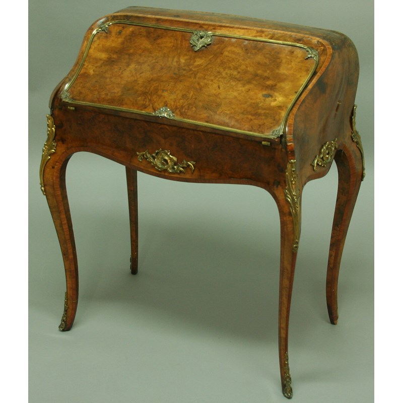 A FRENCH WALNUT BUREAU DE DAME with gilt metal mounts and fitted interior. height 89cm x width 72cm.