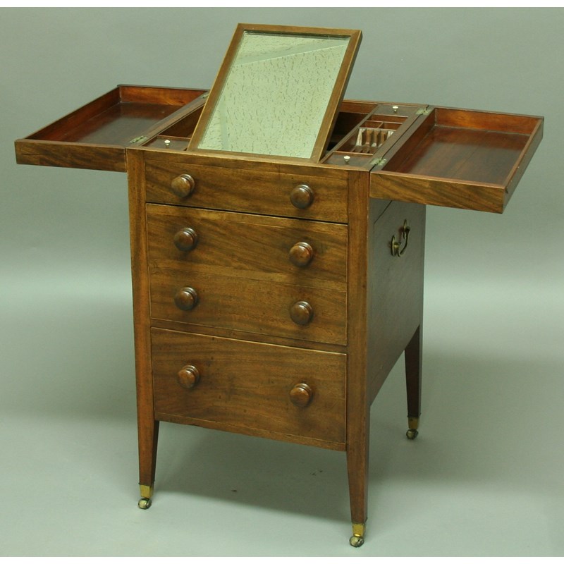 circa 1800, the fold out top enclosing a fitted interior, above a drawer and pull out bidet with ceramic liner, brass swing handles, height 86cm