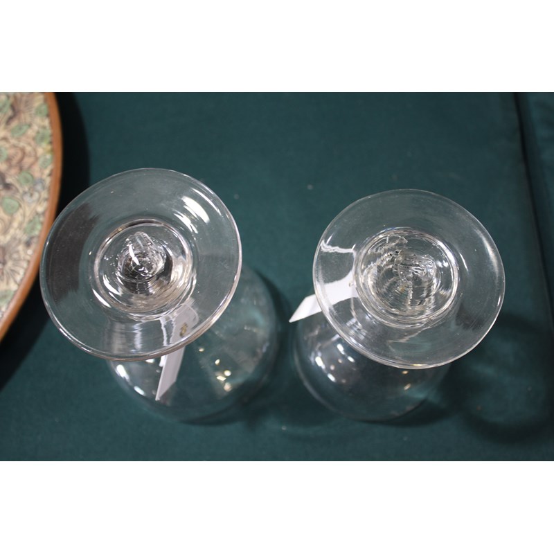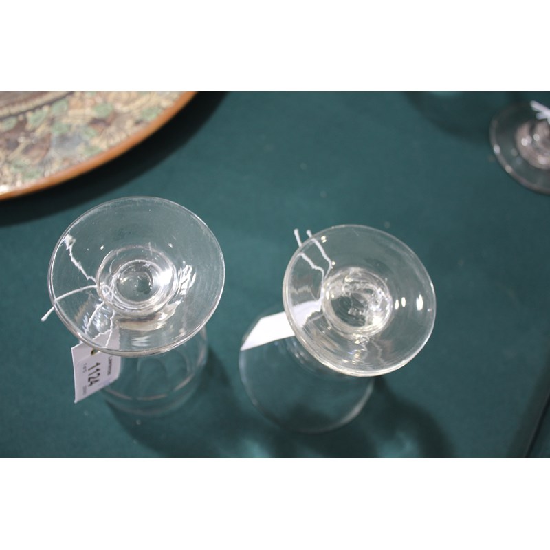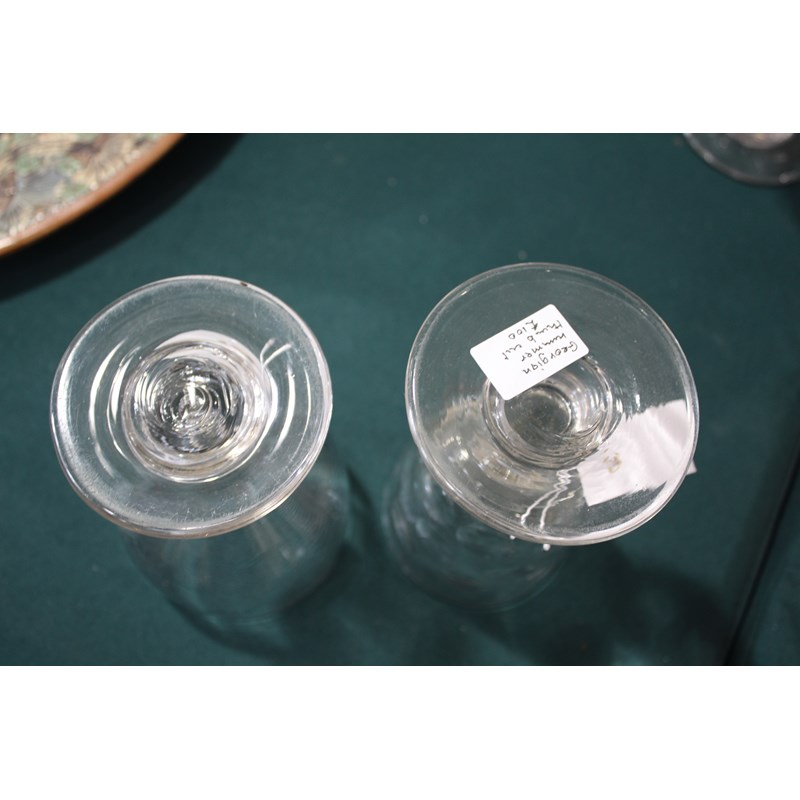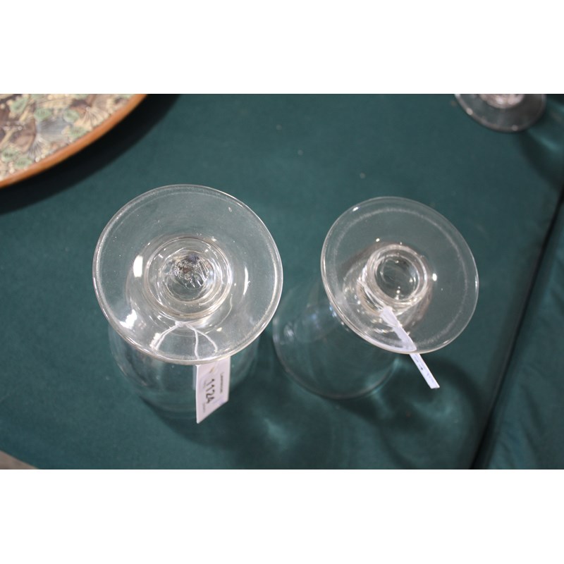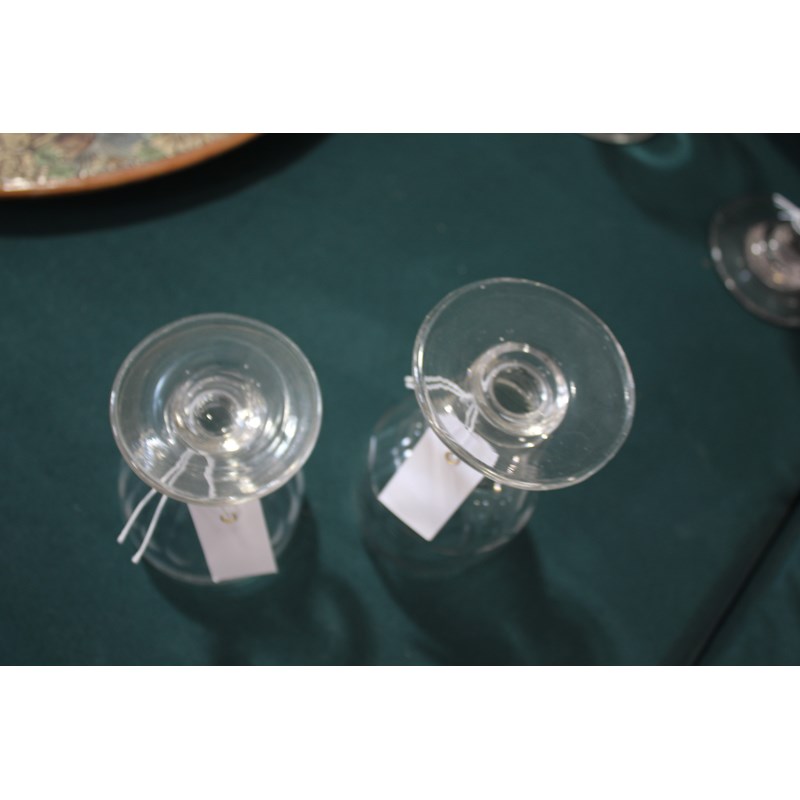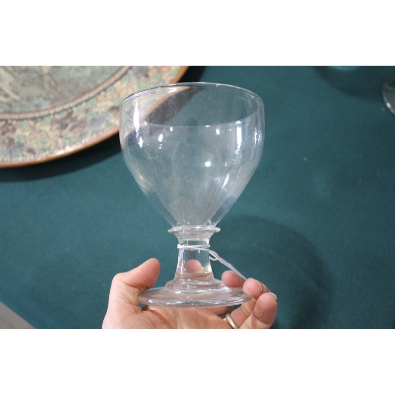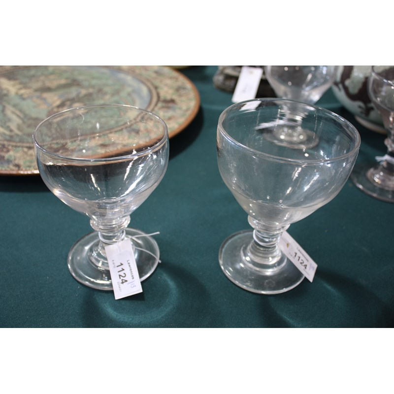 including a near pair of rummers with ovoid body an capstan stem (15cms high), a large rummer with tapering body and capstan stem (15cms), a pair of wine glasses with faceted sides, and various other rummers. (13)