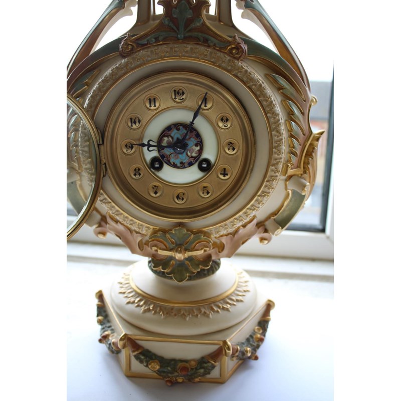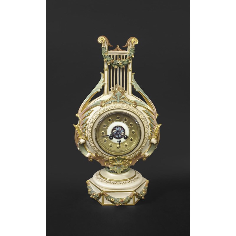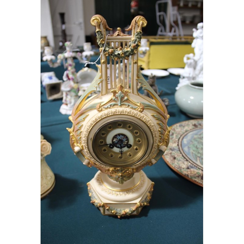 RARE ROYAL WORCESTER LYRE CLOCK