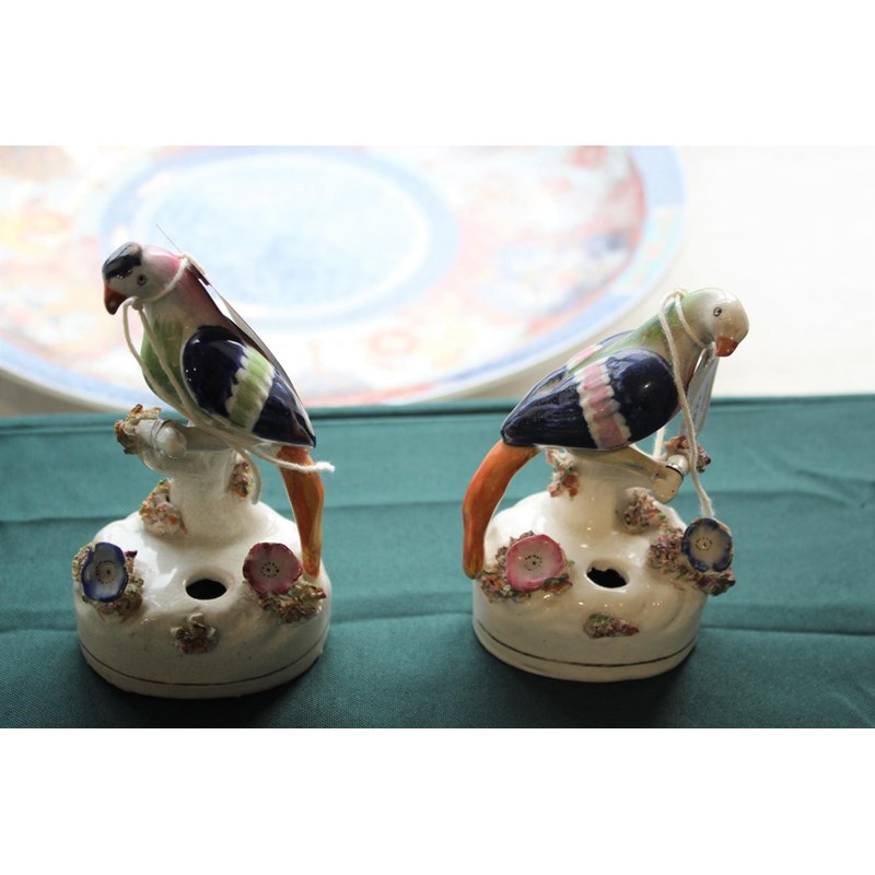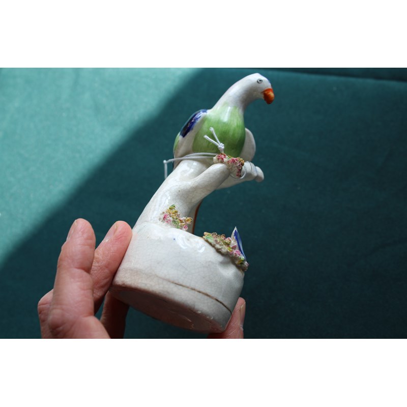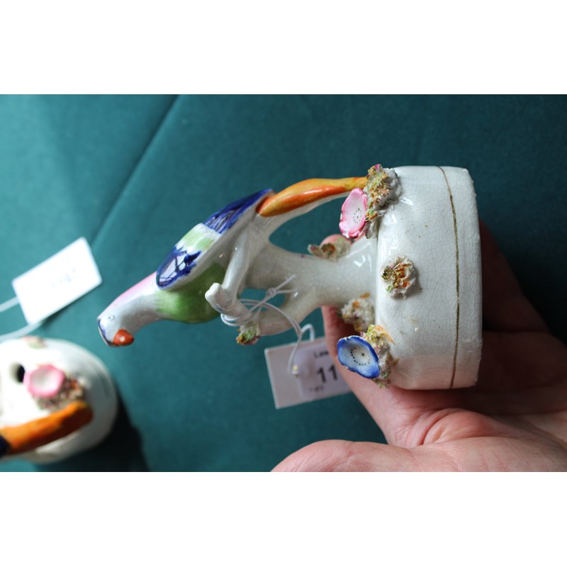 PAIR OF 19THC STAFFORDSHIRE INK POTS - BIRD