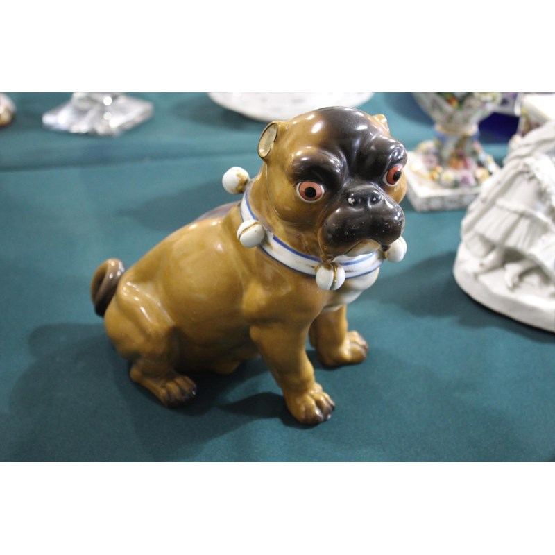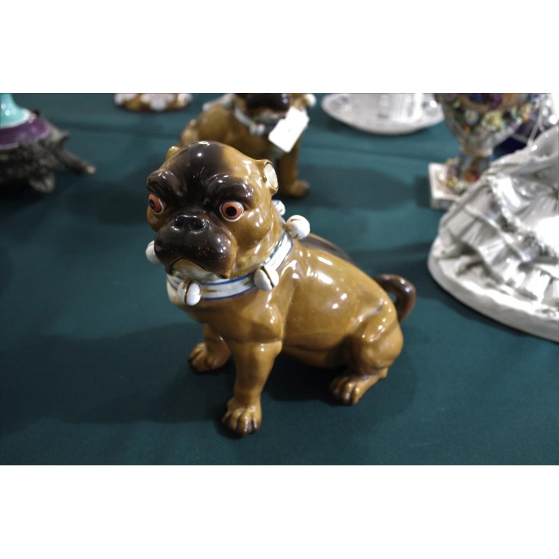 PAIR OF MEISSEN STYLE PUG DOGS