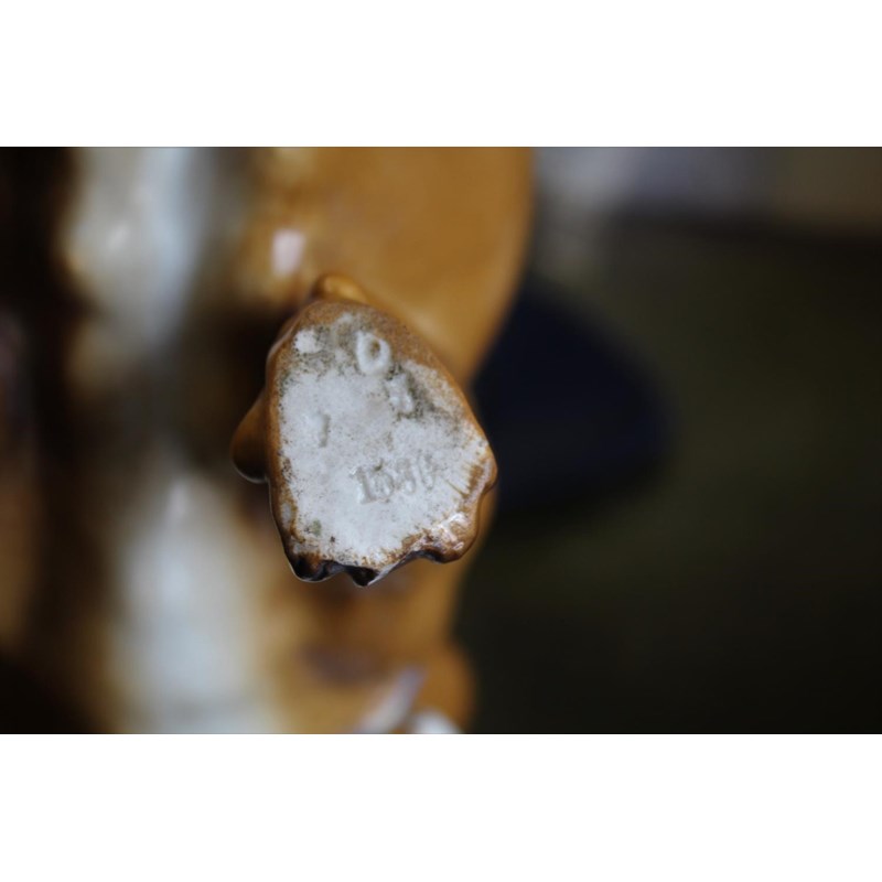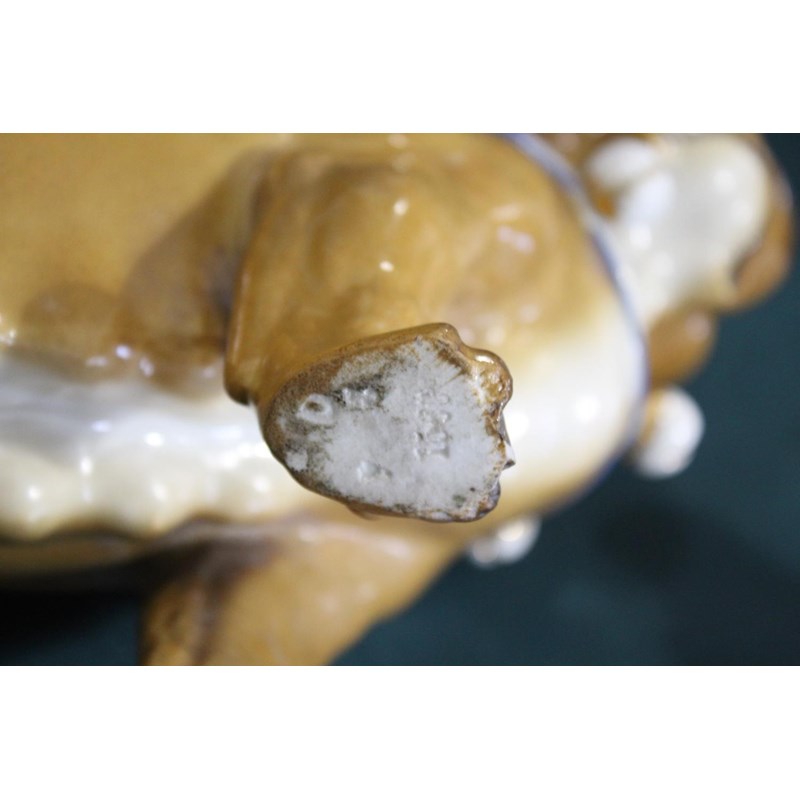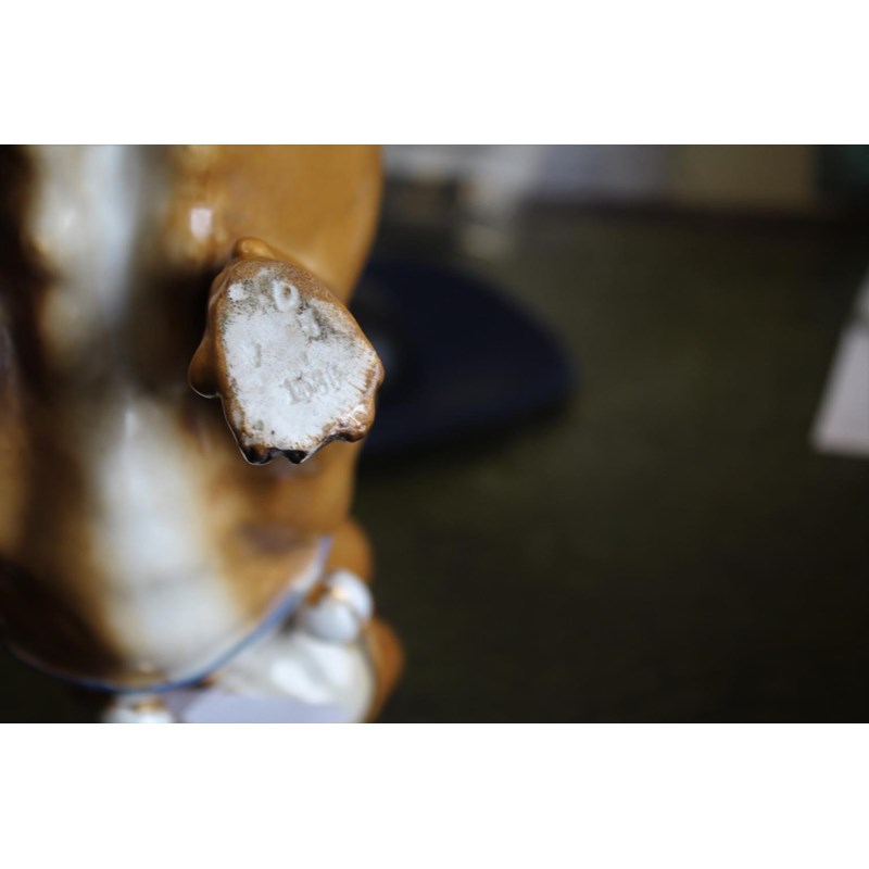 probably by Conta & Bochme, the porcelain Pugs both seated and with painted collars and attached bells. Incised Cross Swords mark, 1560, and impressed mark (difficult to read). 21cms high. 21cms high. (2)