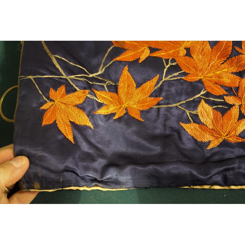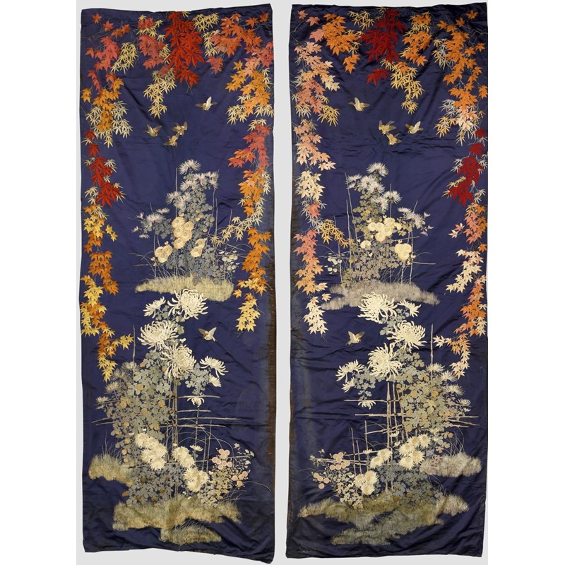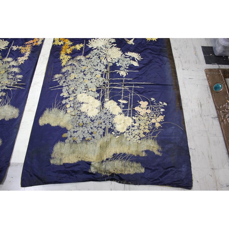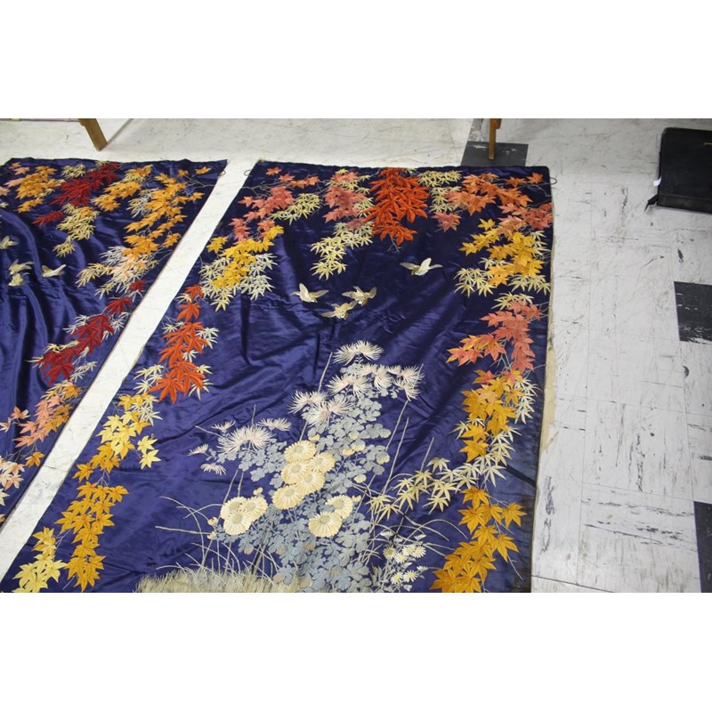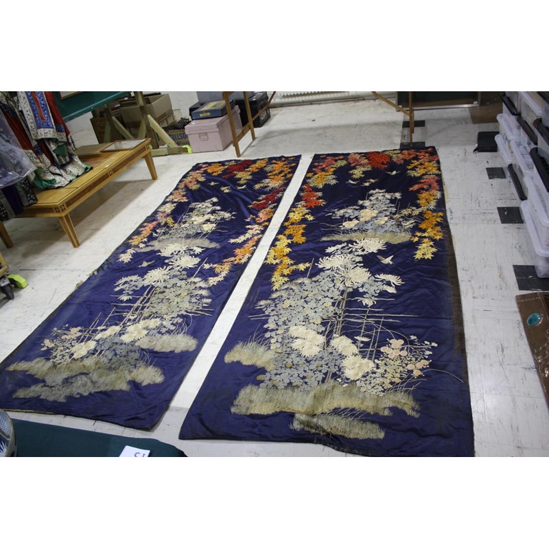 PAIR OF LARGE JAPANESE SILK WALL HANGINGS