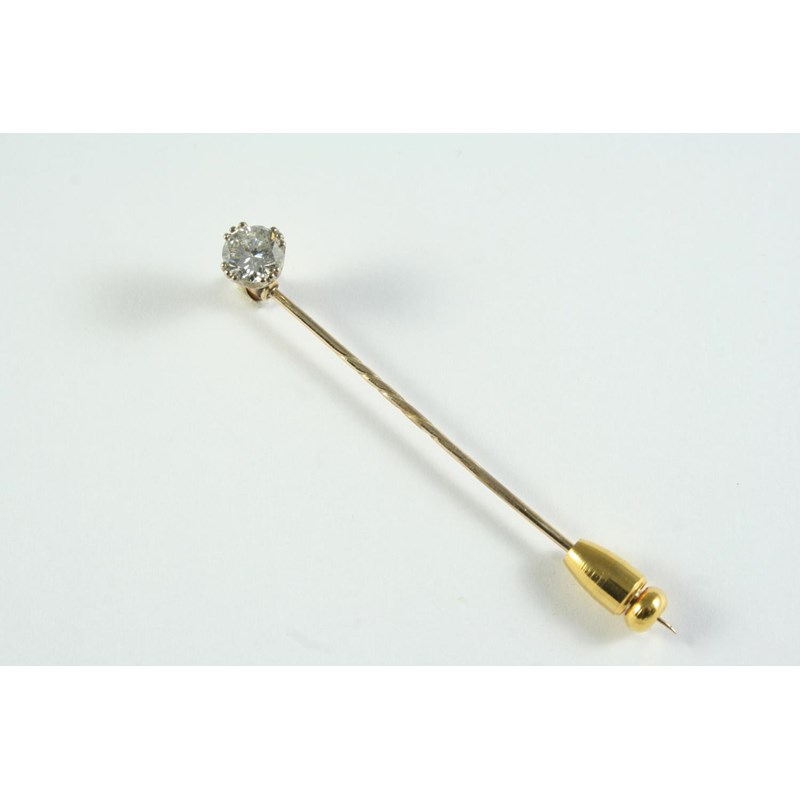A DIAMOND STICK PIN mounted with a brilliant-cut diamond, in gold
