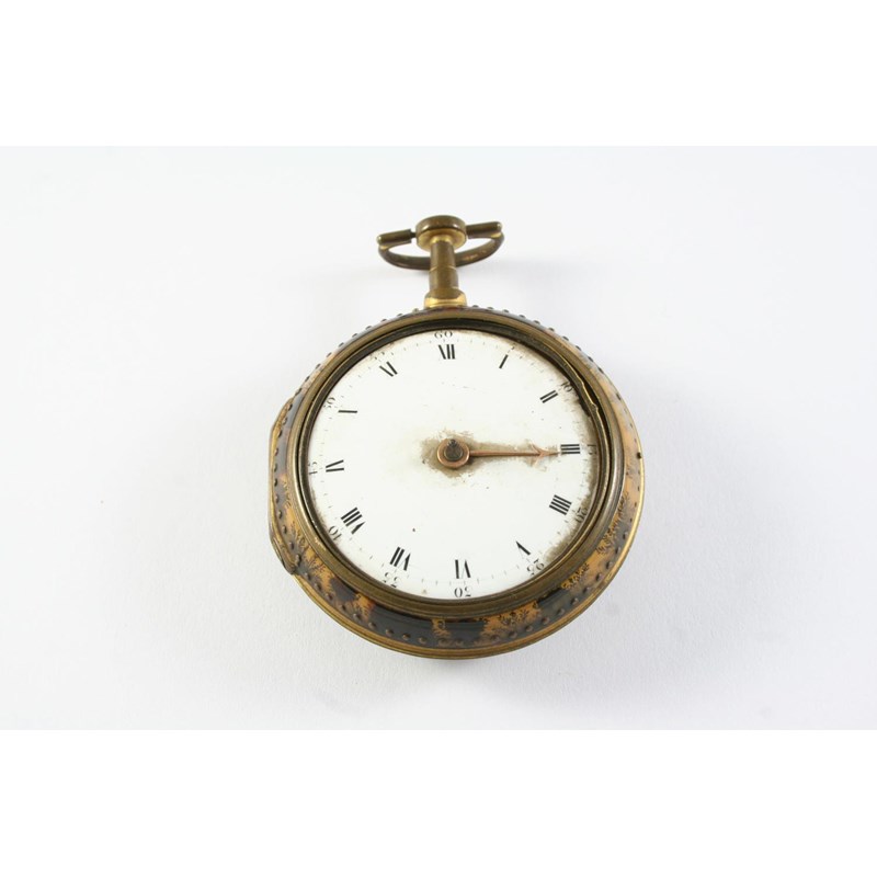 A 19TH CENTURY GILT METAL AND TORTOISESHELL PAIR CASED POCKET WATCH