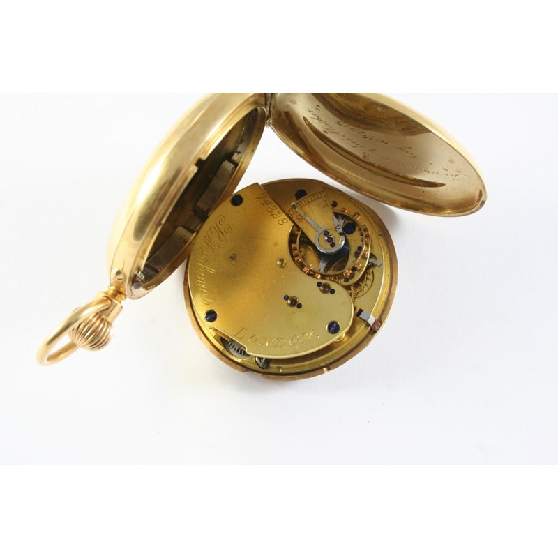 AN 18CT GOLD FULL HUNTING CASED POCKET WATCH