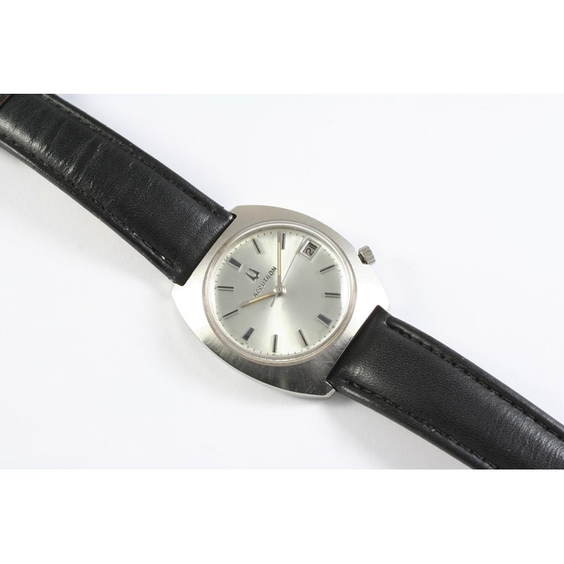 A GENTLEMAN'S STAINLESS STEEL 'TUNING FORK' ACCUTRON WRISTWATCH BY BULOVA